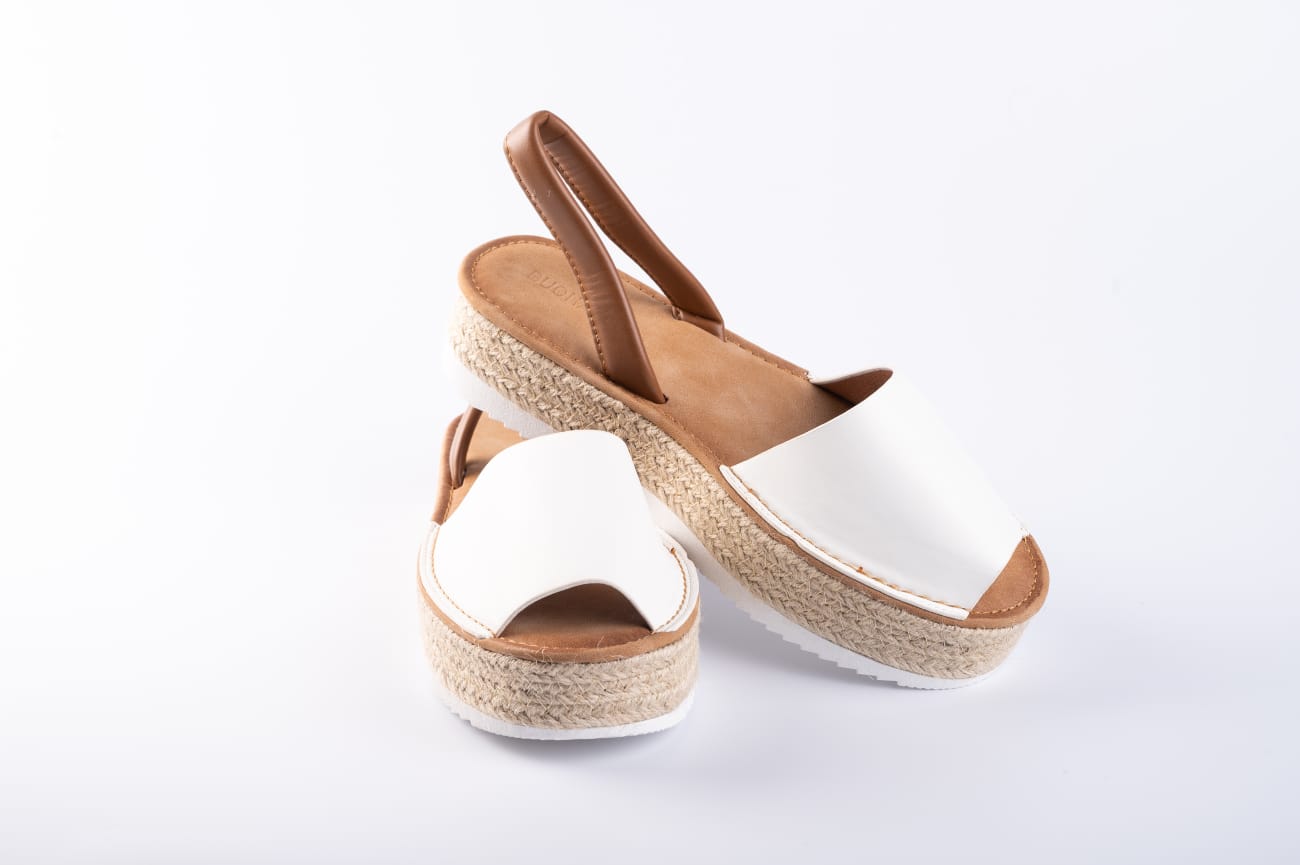 Sandalia de Plataforma para Mujer Comoda Forrada de Yute Pala Cerrada y Entrelazada Talón Abierto y Cierre de Hebilla
